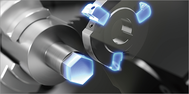 Synchronize the rotational speed of the tool and workpiece and achieve highly efficient machining of polygonal shapes