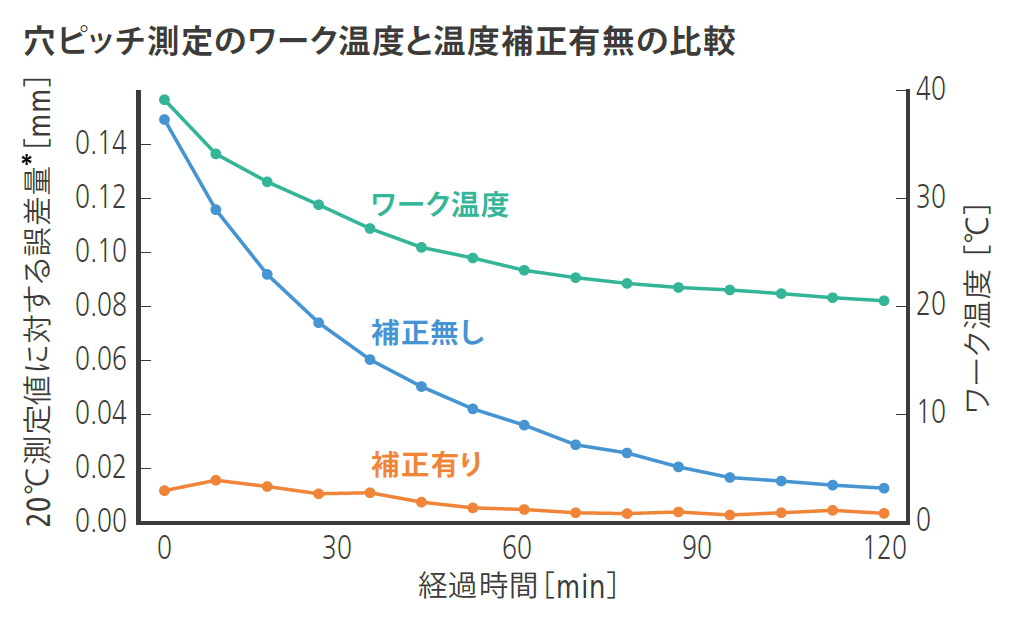 * 加工直後で高温(40℃)になっているワークを、20℃の測定室に持ち込んで測定