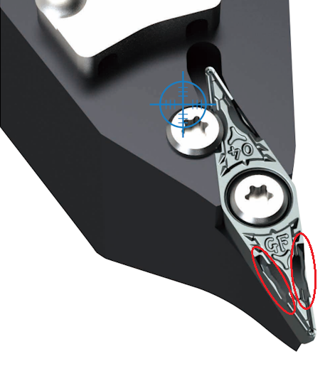インサートを2点止めするユニークな構造により、固定が困難な先端角の小さいインサートでも安心して固定が可能です。