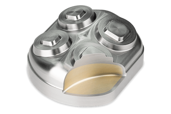 このように金型の部分に応じて素材を変更することで、切削やPBF方式で製作したコンフォーマルクーリングチャンネルを持つダイカスト金型と比較して、より高能率、高硬度の金型を製作する事ができます。