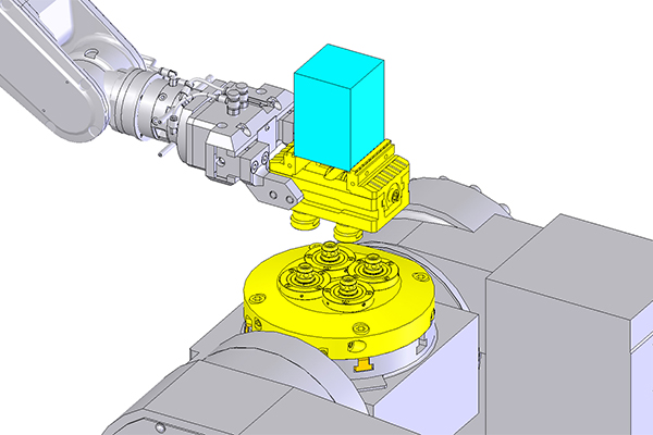 バイスそのものをロボット搬送するという仕組みにより、口金を変えるだけで、多品種少量生産の自動化が可能になります。汎用性が高く、ワークごとに専用治具などを設計・製作する必要がないので、導入コストも抑えられます。